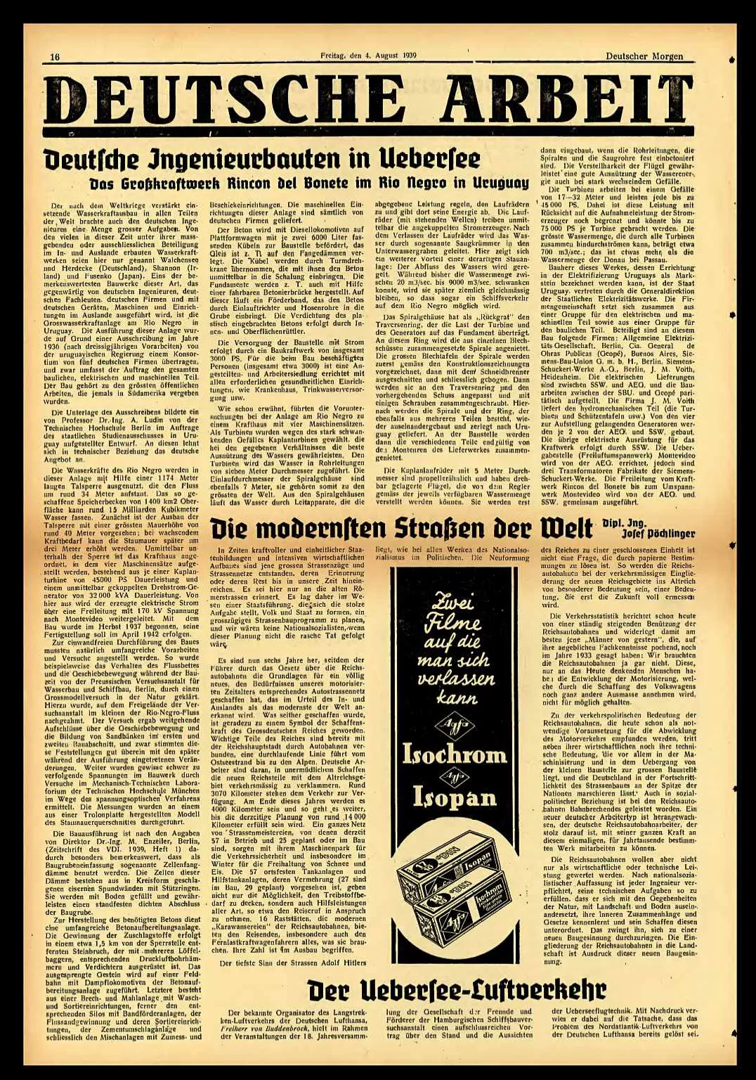 El periódico difunde las ideas nazis con materiales enviados desde Alemania. Se intensifican las relaciones con Alemania, las comerciales y económicas, alentándose este proceso.