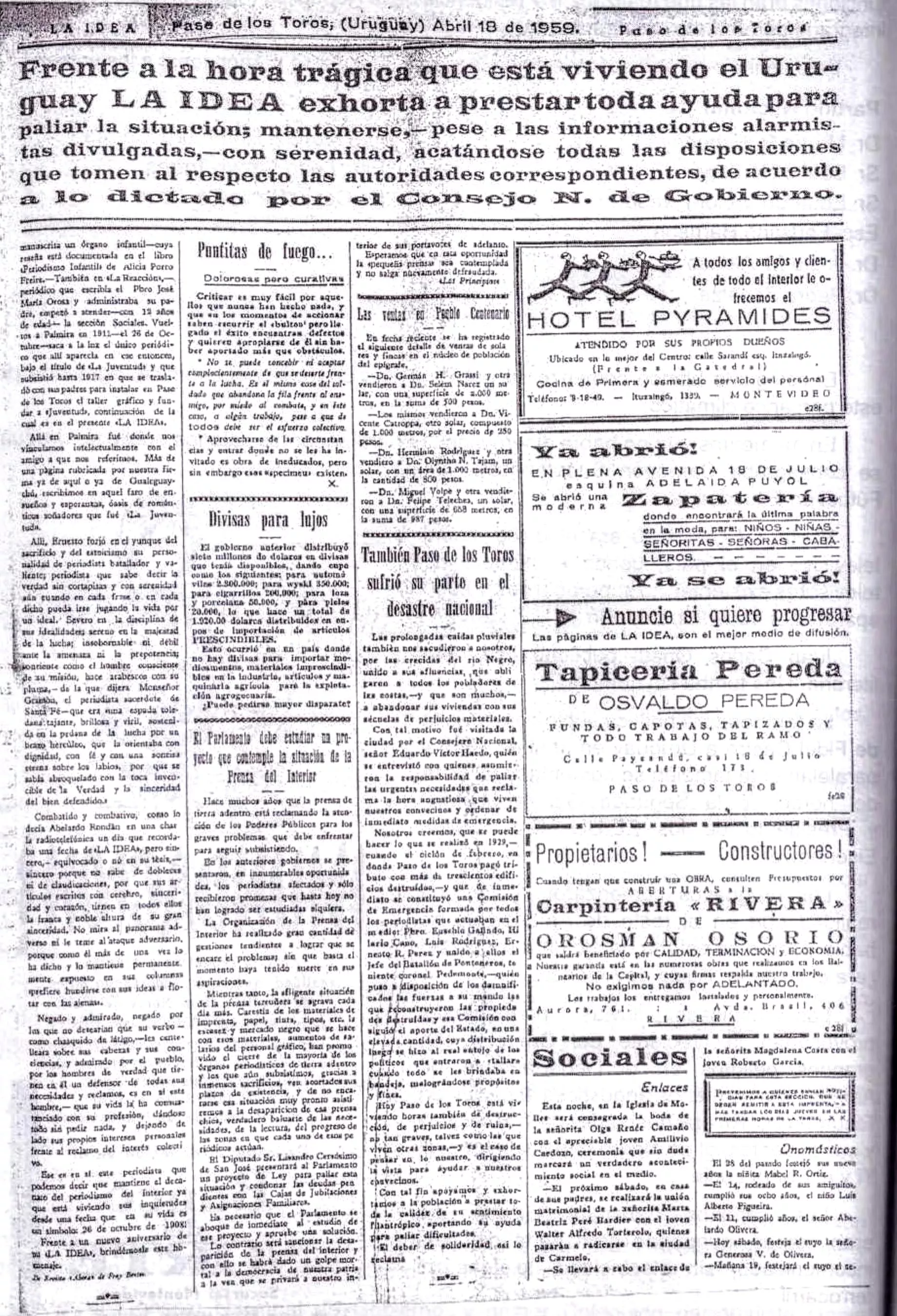 "LA IDEA, Paso de los Toros (Uruguay) Abril 18 de 1959: